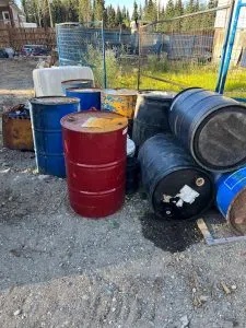 Barrels on the property where signs of hazardous contamination were noticed. Photo Courtesy of Kimpton Gagnon.