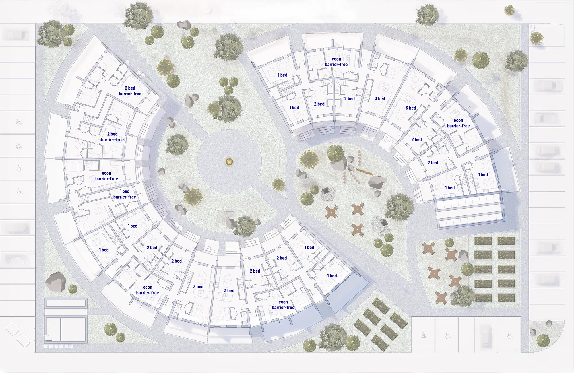 The units have been described as condo-townhouses, ranging from 1 to 3 bedrooms and are between 440 to 11-hundred square feet. All units also include a yard and balcony and are to be built according to Universal Design principals, ensuring accessibility for all.