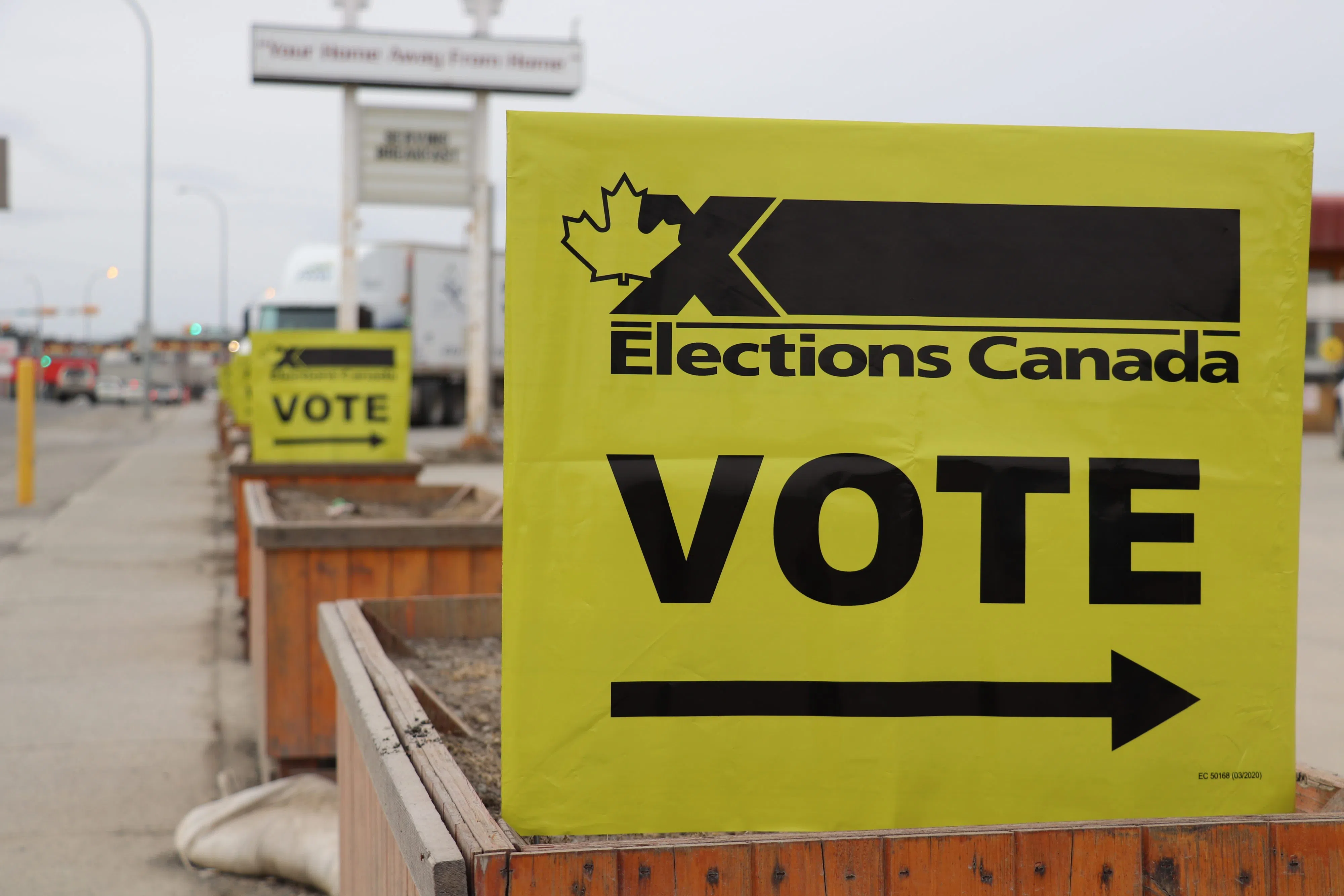 An Elections Canada sign outside the Yukon Inn Plaza shortly after polls opened at 7am. Photo Courtesy of Macklen Linke/CKRW.