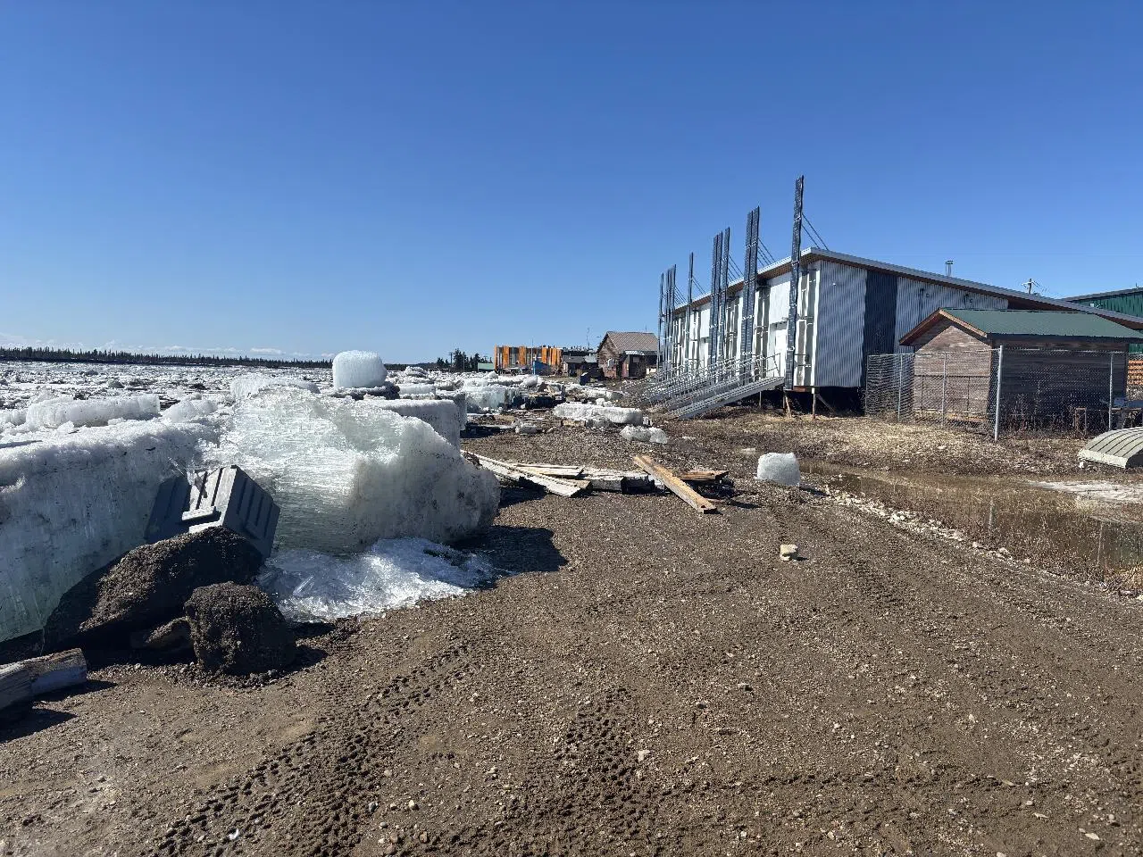 Ice along the waterfront in Old Crow following flooding on Saturday. Photo Courtesy of Vuntut Gwitchin First Nation/Facebook.