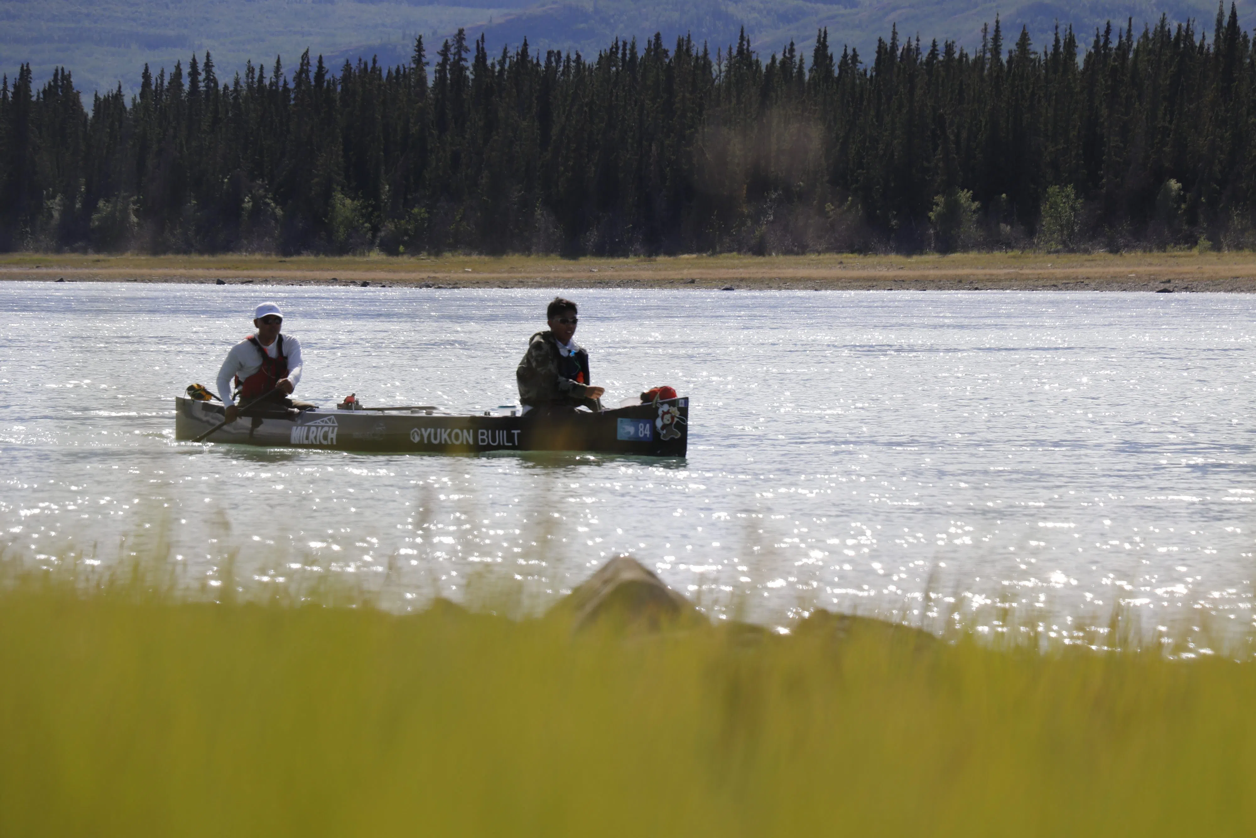 A team comes into the Lower Laberge checkpoint on Wednesday. Photo Courtesy of Macklen Linke/CKRW.