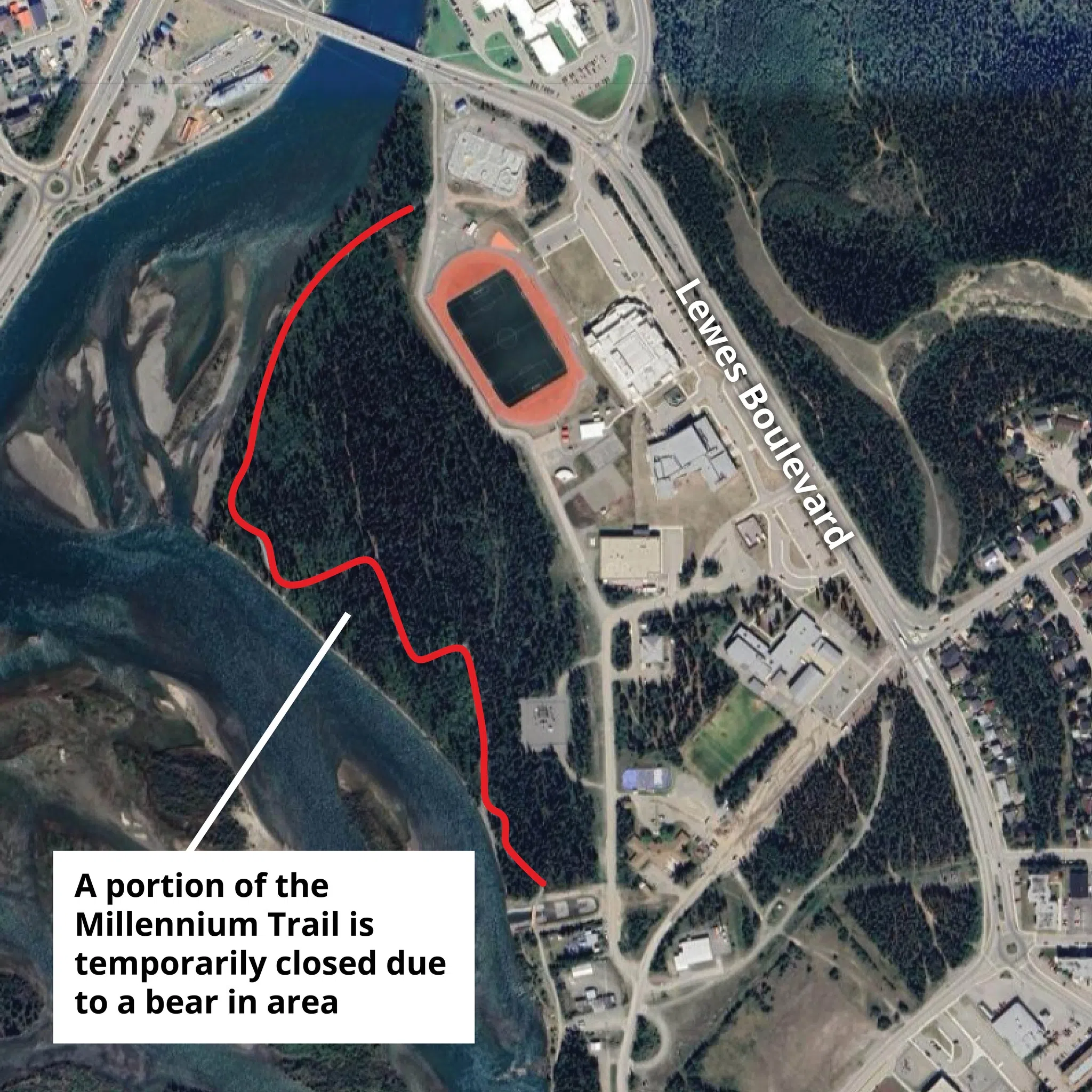 A portion of the Millennium Trail that has been closed since July 21 due to a bear sighting. Photo Courtesy of Yukon Conservation Officer Services/Facebook.